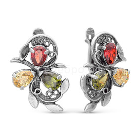 Серебряные серьги оксидированные Цветная фантазия 3382564-1