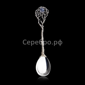 Чайная ложка искусно выполнена в виде изящного зимнего деревца с витиеватой кроной и рельефным стволом. Общая композиция отличается проработкой каждой детали, а самым ярким акцентом здесь является вставка халцедона – драгоценного камня, отдающего морозной синевой и зимней свежестью. Ложка «Зима» - часть тематического набора ложек, созданного в рамках коллекции «Русское Серебро» по временам года, и послужит прекрасным подарком родителям на серебряную свадьбу или коллегам и партнерам. Ее достоинствами проникнутся даже самые искушенные знатоки ювелирного мастерства, а практическая польза, которую мы получаем, используя столовые предметы из серебра, научно доказана и остается вне всяческих сомнений.